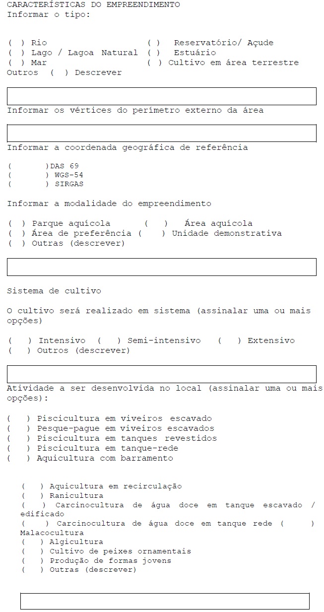 4 - No caso de empreendimentos implantados em corpos de água (por exemplo, tanque rede), apresentar: