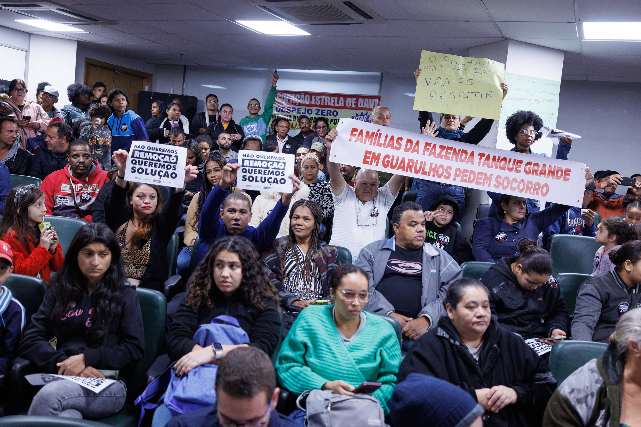 "Nossa função é ouvir as comunidades, abrir esse diálogo com os governos federal e estadual para que a gente consiga, de fato, garantir que as famílias tenham um plano de reassentamento. A maioria quer ficar em suas casas. Que a gente lute para que venha um plano de urbanização, regularização e de qualidade de vida e não de retirada das famílias", disse Ediane Maria. Lotaram o auditório Paulo Kobayashi moradores de comunidades como Jardim Pantanal, na Zona Leste, Fazenda Tanque Grande, em Guarulhos, Complexo do Jaguaribe, em Osasco, e Ocupação da Kaplas, em Itaquaquecetuba, entre outras.