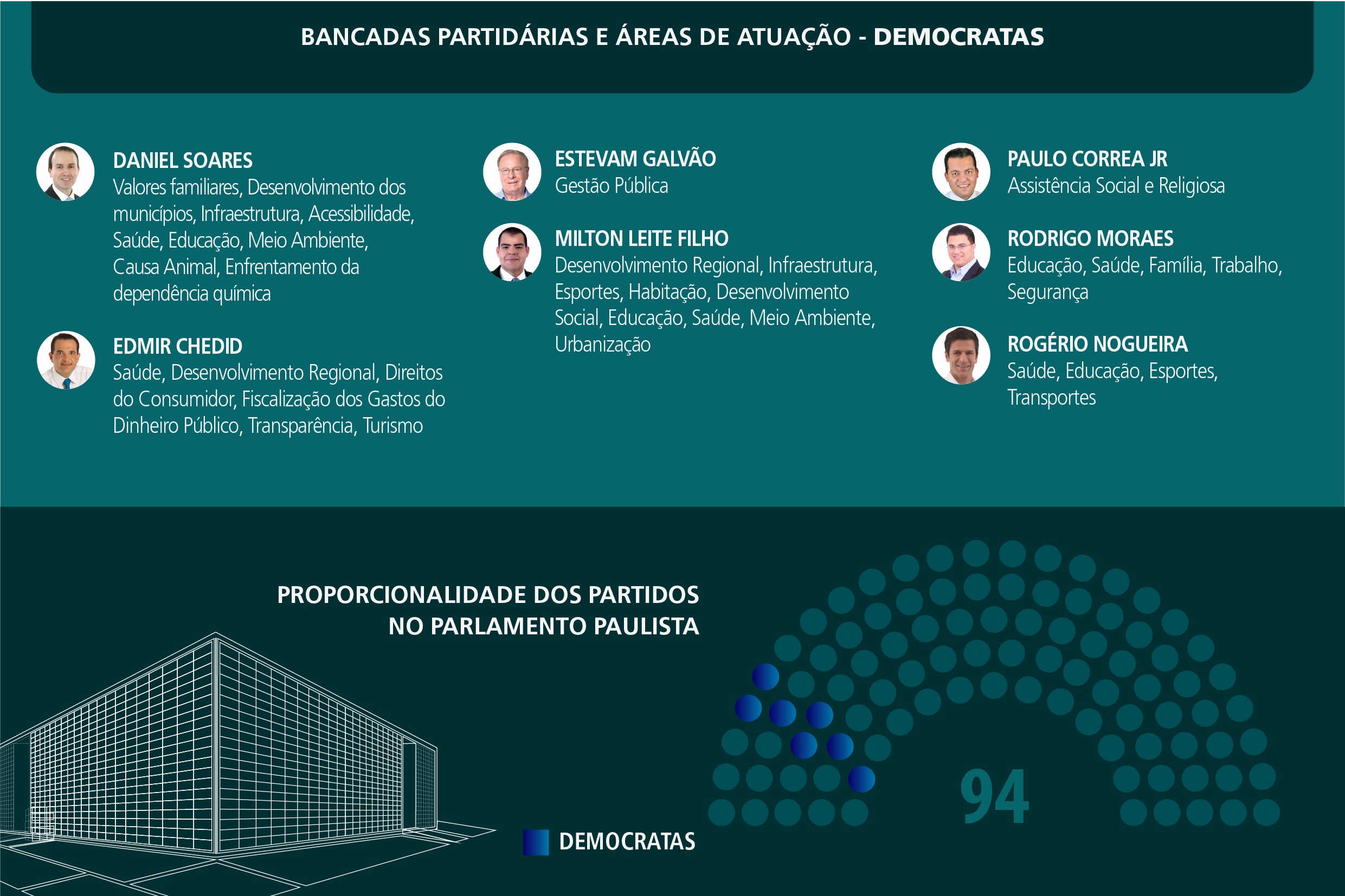 Composta por sete parlamentares, bancada do Democratas é uma das maiores da Assembleia Legislativa do Estado de São Paulo