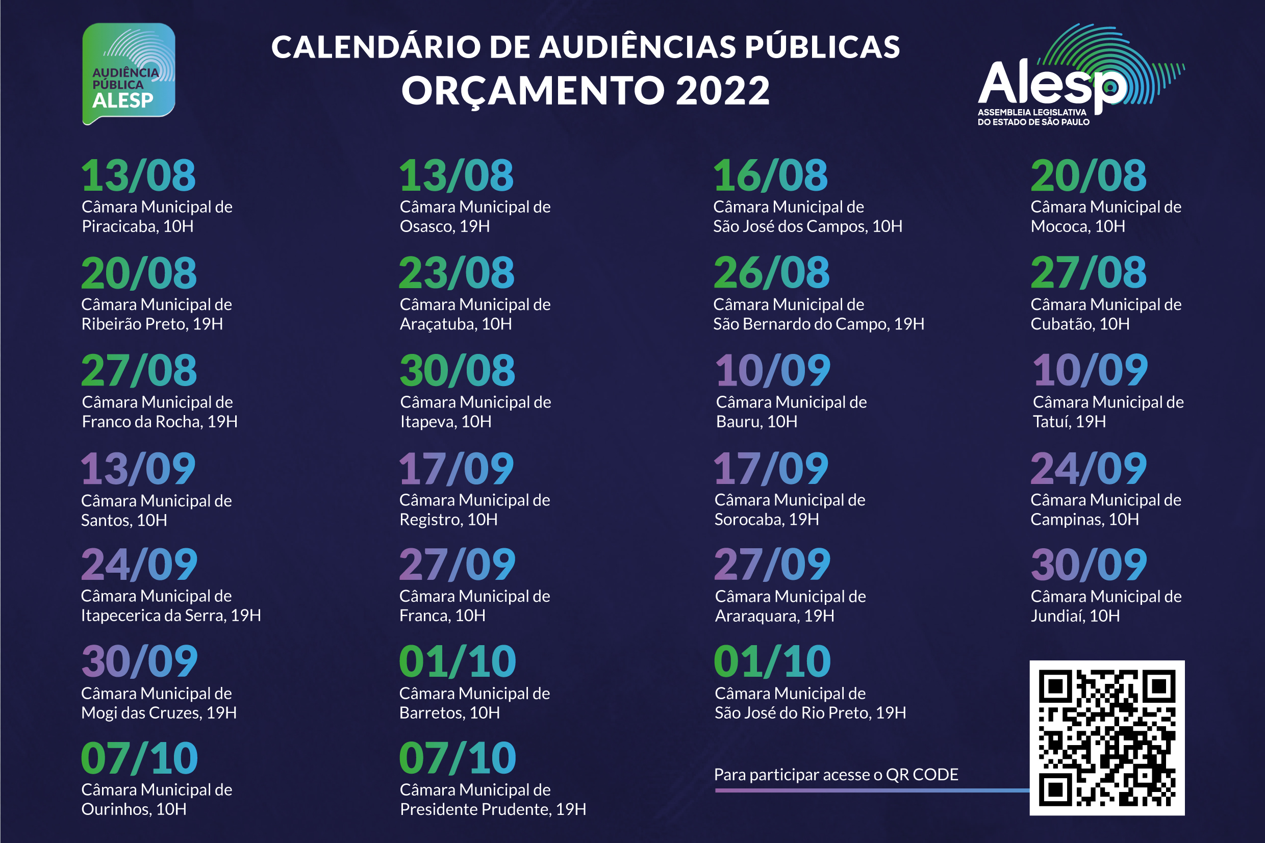 - Alesp promove nova rodada de audiências públicas para debater o Orçamento estadual de 2023