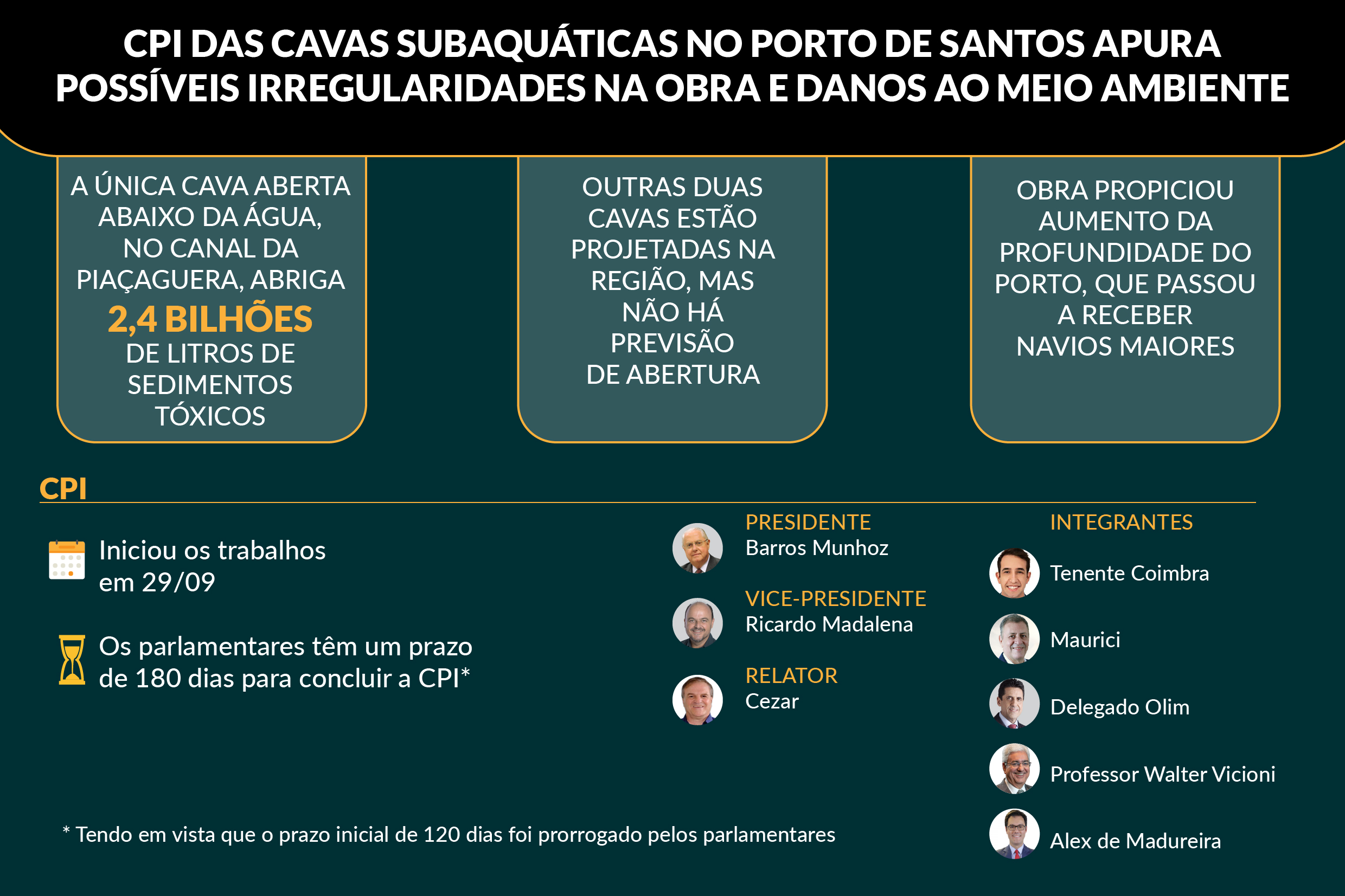 Parlamentares da CPI (Comissão Parlamentar de Inquérito) das Cavas Subaquáticas ouviram, nesta quarta-feira (8/12), a presidente da Colônia Pescadores Z4, de São Vicente, Maria Aparecida Nobre da Silva, sobre a Cava Subaquática do Casqueiro (CAD).