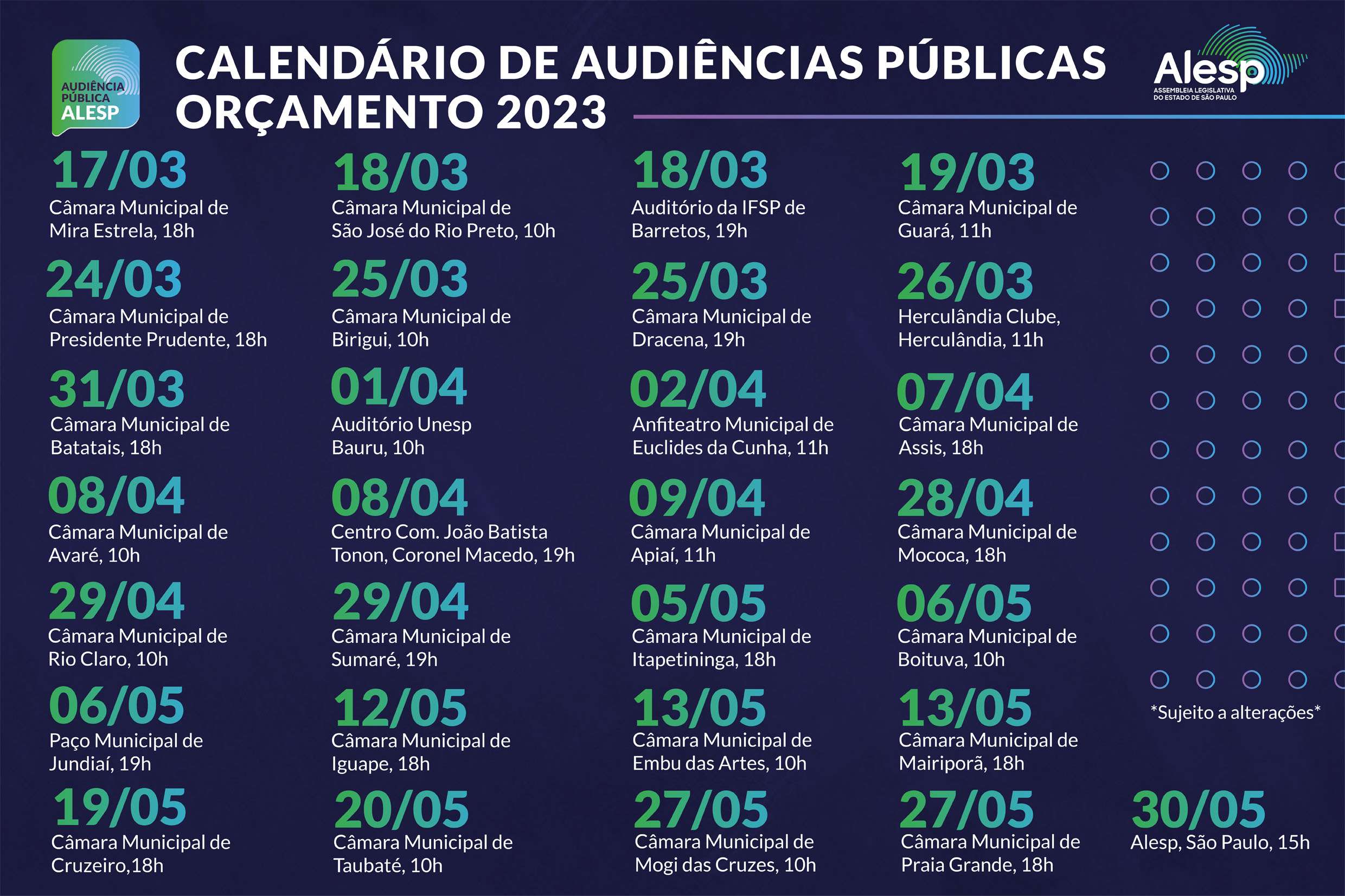 - Alesp realiza última audiência pública do Orçamento estadual para 2023 nesta quinta, 2, na Capital