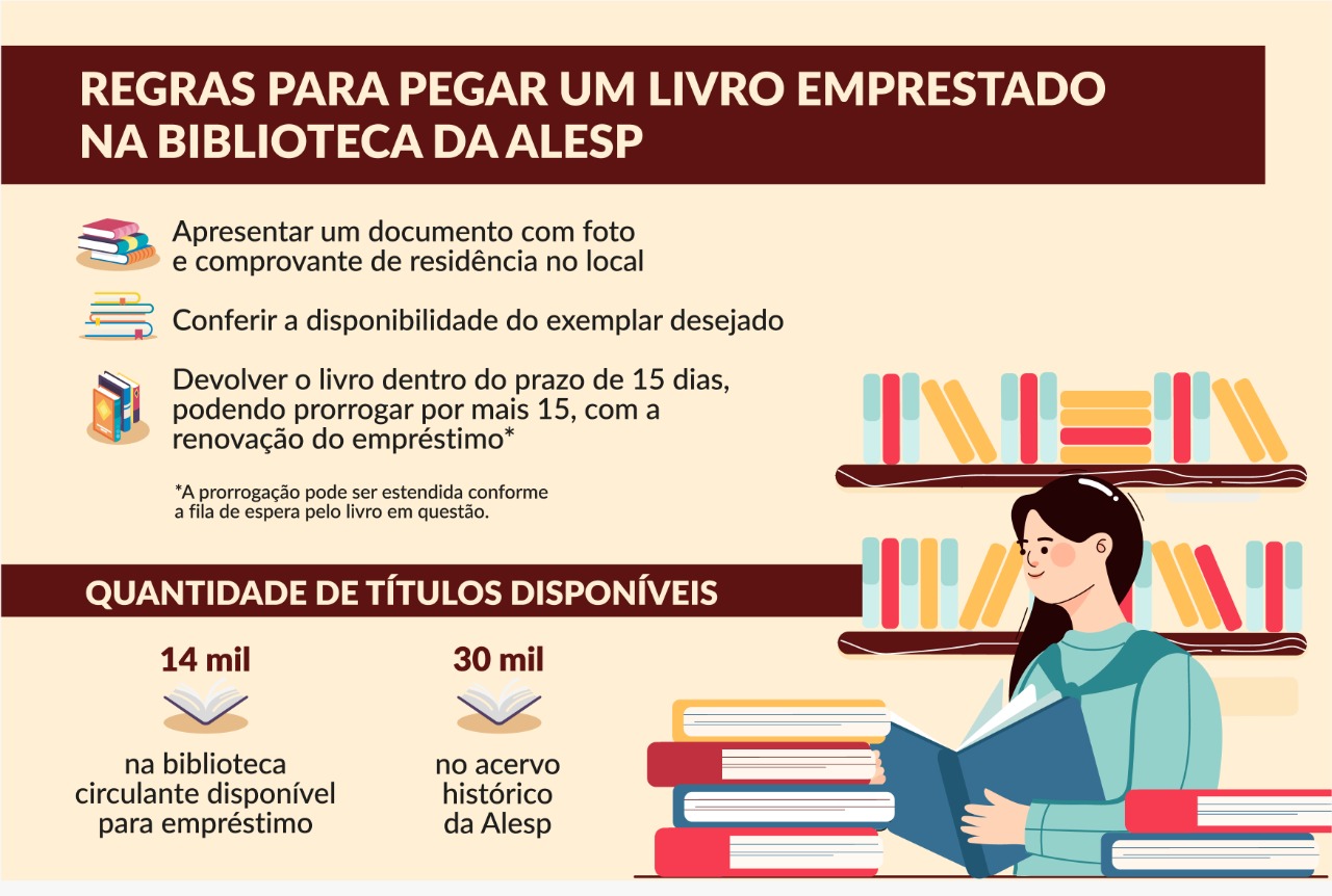 Os serviços da biblioteca da Alesp também podem ser acessados em ambiente virtual. Para conferir o catálogo e a disponibilidade de um livro na Casa, acesse: https://app.al.sp.gov.br/catalogo-biblioteca/. Outra alternativa é utilizar a biblioteca digital que possui diversos temas como Direito Administrativo, Eleições Meio Ambiente e outros pelo link: https://www.al.sp.gov.br/alesp/biblioteca-digital/.