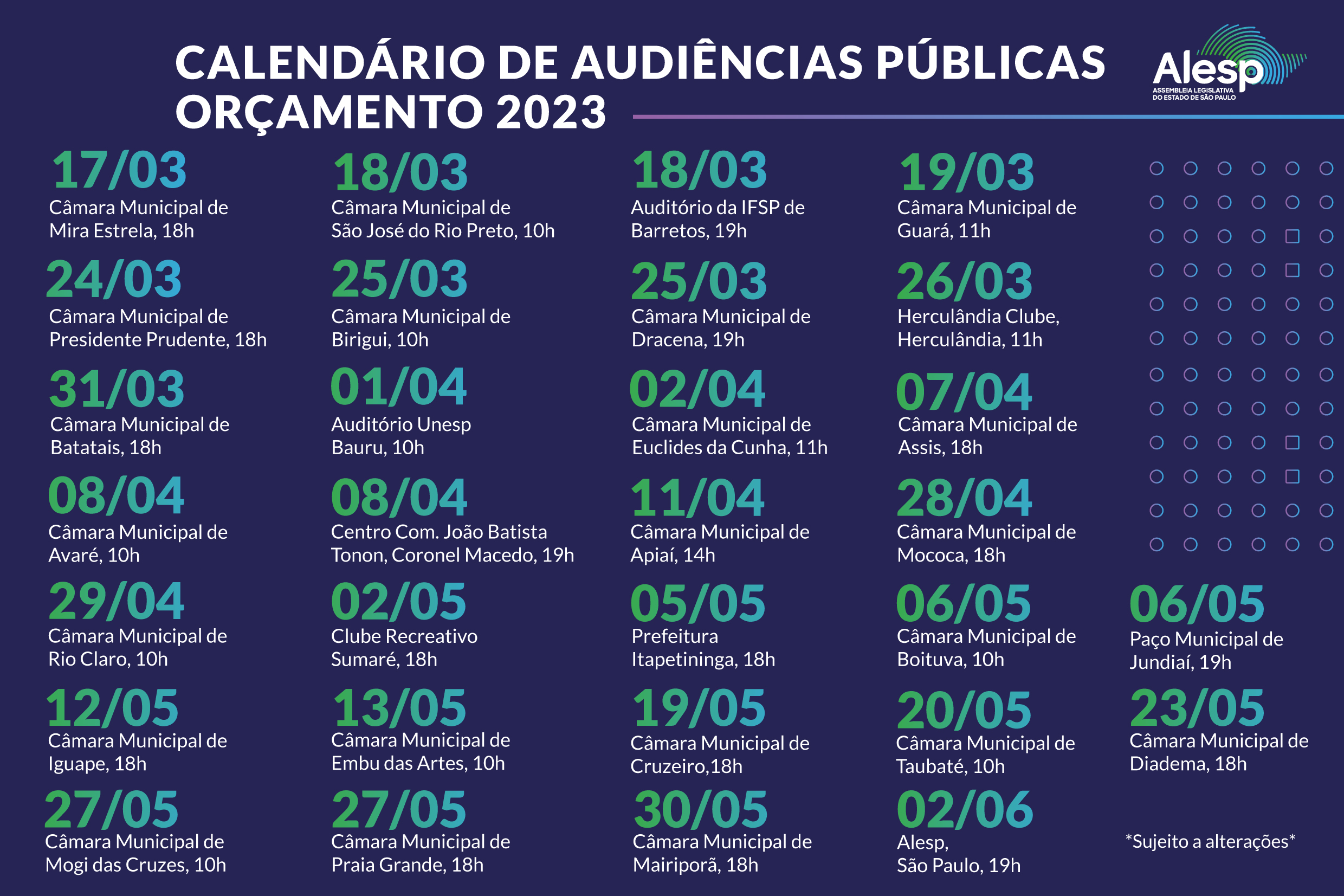 - Alesp promove nova rodada de audiências públicas para debater o Orçamento estadual de 2023