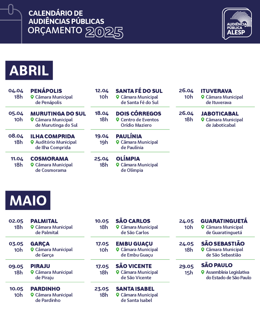- Audiências do Orçamento 2025: Alesp pega a estrada para debater o futuro do Estado de SP