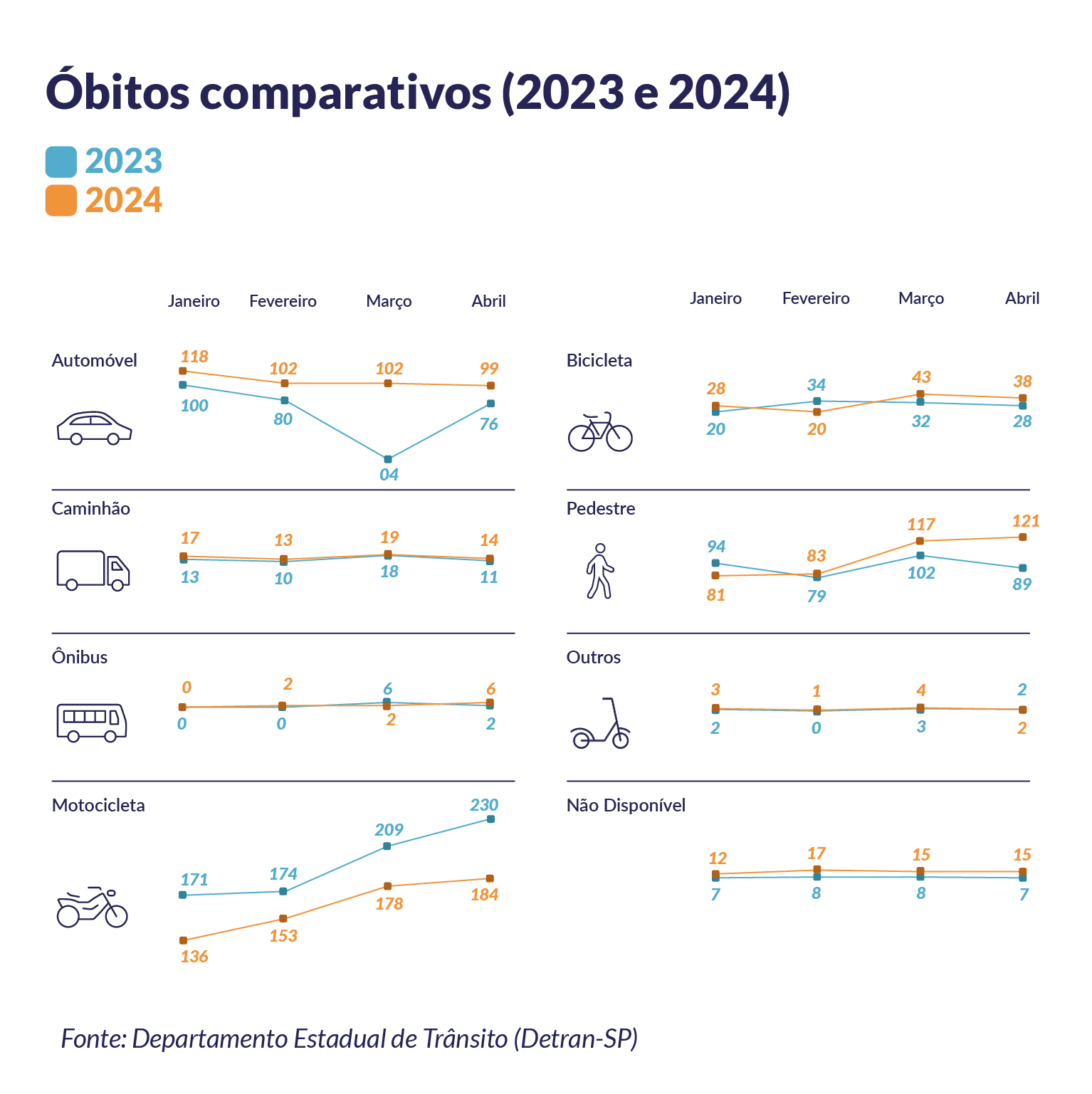 Segundo dados do Detran-SP, houve cerca de 5 mil mortes no trânsito em 2023 e aproximadamente 180 mil acidentes não fatais.