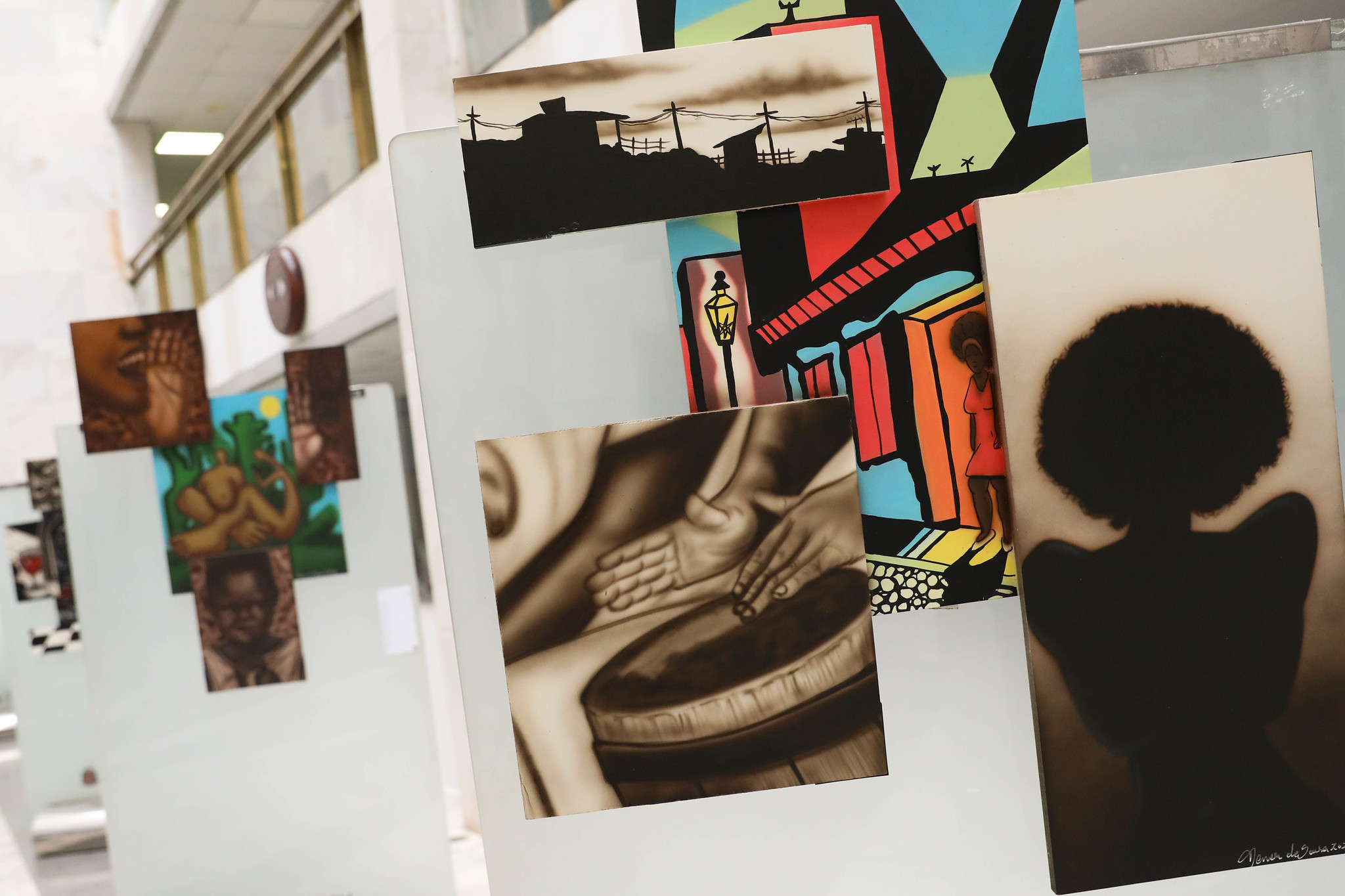 Por solicitação do deputado Teonilio Barba (PT), em parceria com o SOS Racismo - serviço da casa em combate à discriminação racial -, as 12 obras que compõem a mostra artística apresentam, segundo Dener, representações modernas de obras clássicas, trazendo a cultura negra como protagonista.