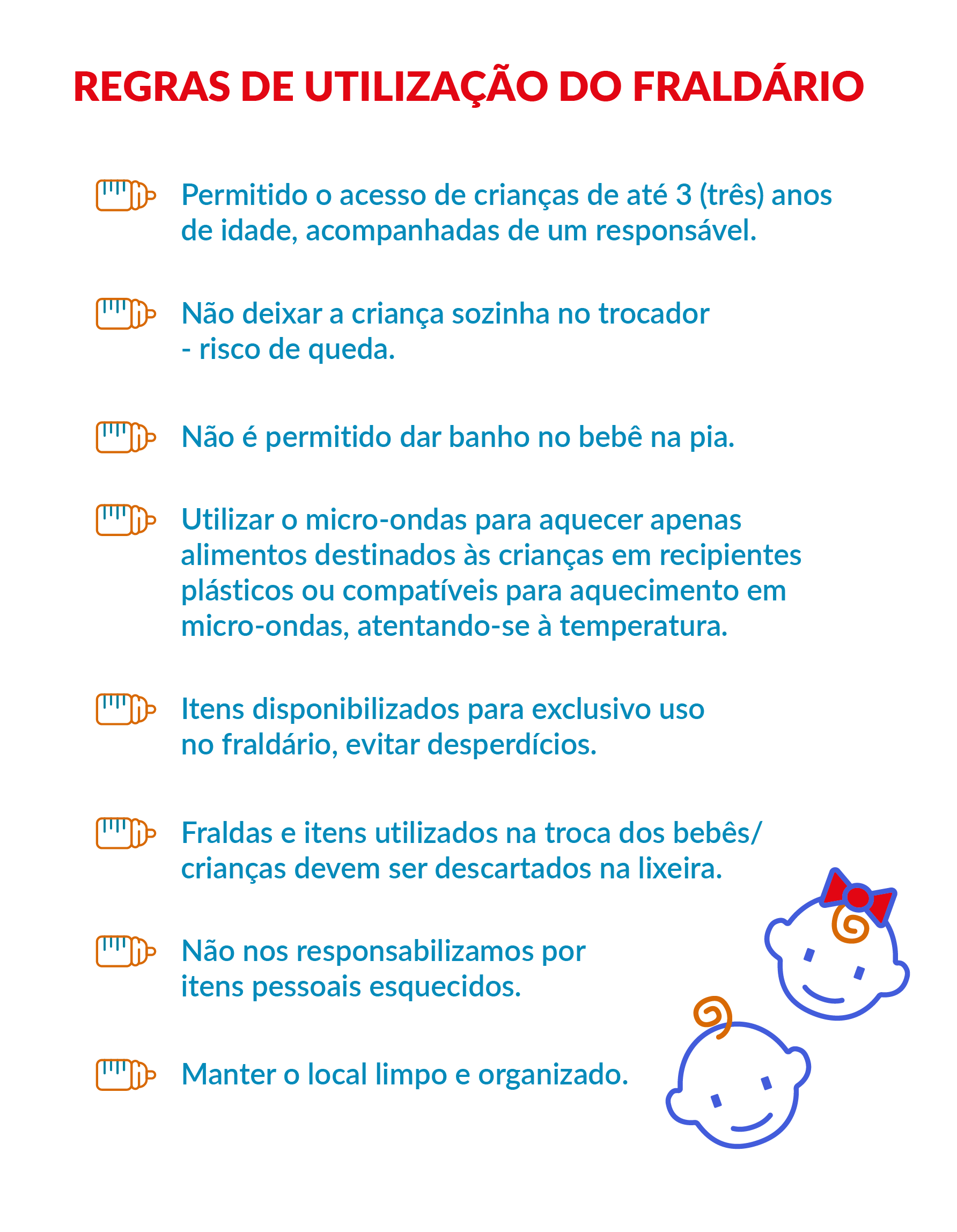Confira abaixo as regras de utilização do Fraldário: