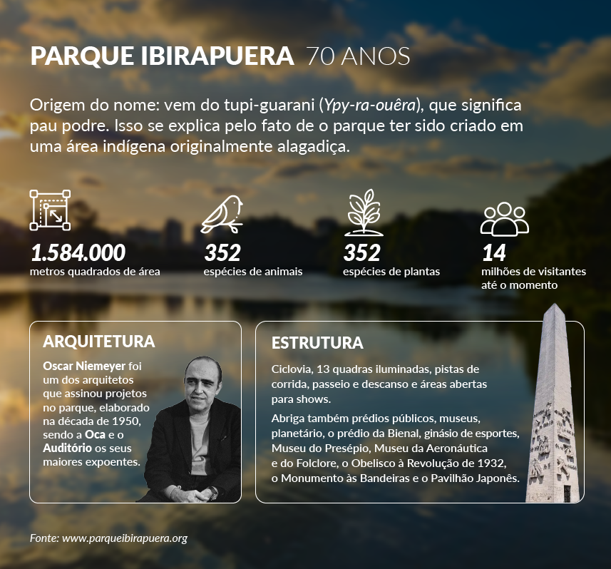 O maior "tesouro verde" da Capital paulista completa 70 anos hoje. Mais do que um parque, o Ibirapuera faz parte da alma da maior cidade da América do Sul e de todos os 14 milhões de frequentadores que aproveitaram sua beleza e alternativas de cultura e lazer até agora. Inaugurado em 21 de agosto de 1954, esse patrimônio brasileiro surgiu em homenagem aos 400 anos da cidade que o abriga e fica ao lado da sede da Assembleia Legislativa do Estado de São Paulo. Assim, por ele estar a apenas alguns passos de distância, muitos servidores da Alesp aproveitam o espaço em busca de saúde e bem-estar.