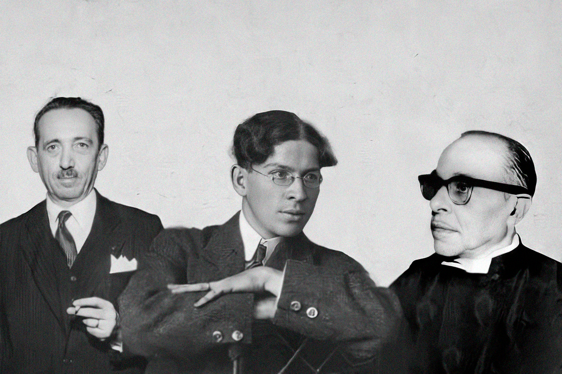 Participantes da Semana de 1922 e deputados estaduais de SP: Plínio Salgado, Menotti del Picchia e Cândido Motta Filho