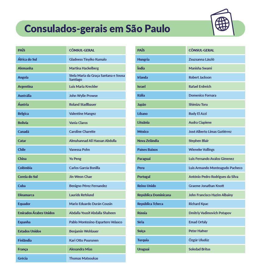 Segundo dados da Prefeitura de São Paulo, a cidade sedia mais de cem representações internacionais, entre consulados, câmaras de comércio e escritórios de representação.