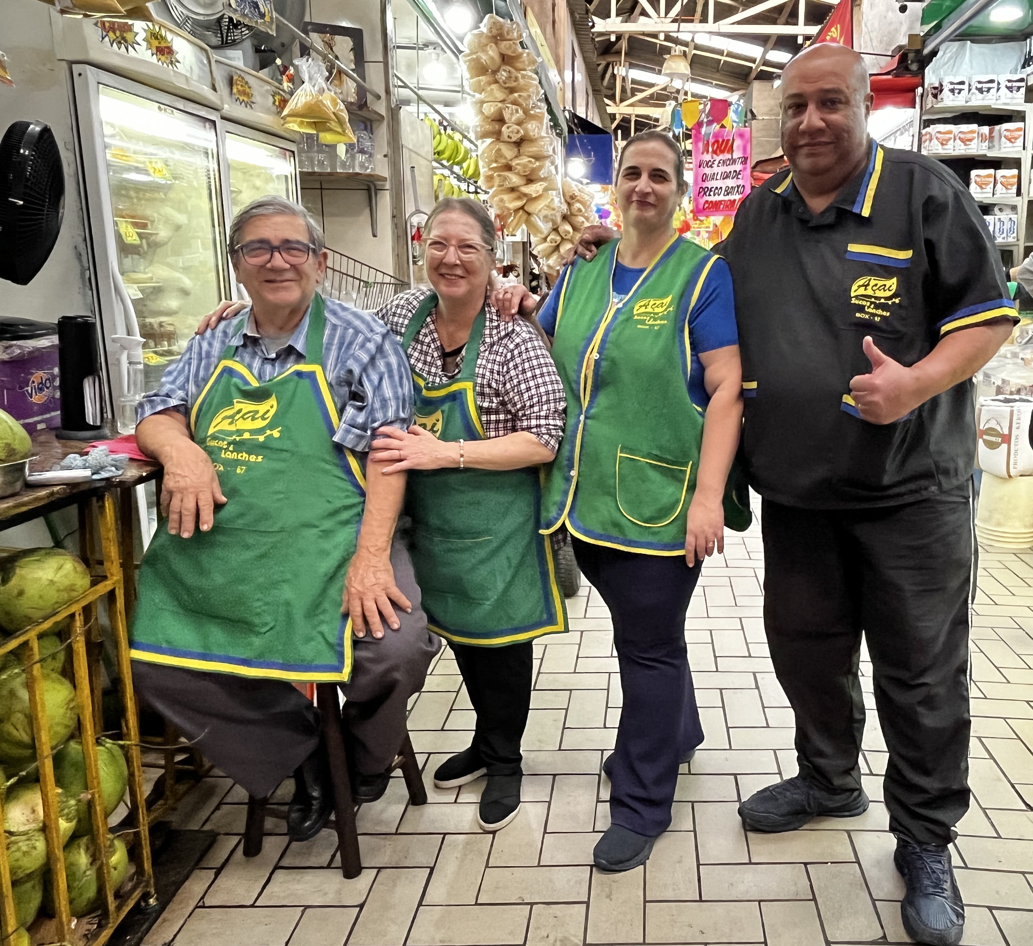 Juntos, eles trabalham há 20 anos no Mercado da Lapa. Com o apoio da família, Marli comanda o box 67, especializado em doces caseiros e polpas naturais. Ali, tudo é feito por ela mesma. "Comecei vendendo polpas, aí tive a ideia de dar nome para cada uma. A de açaí virou suco corintiano. A de caju, é o Santos. A verde, com graviola, é o Palmeiras. E a vermelha, o São Paulo", conta.