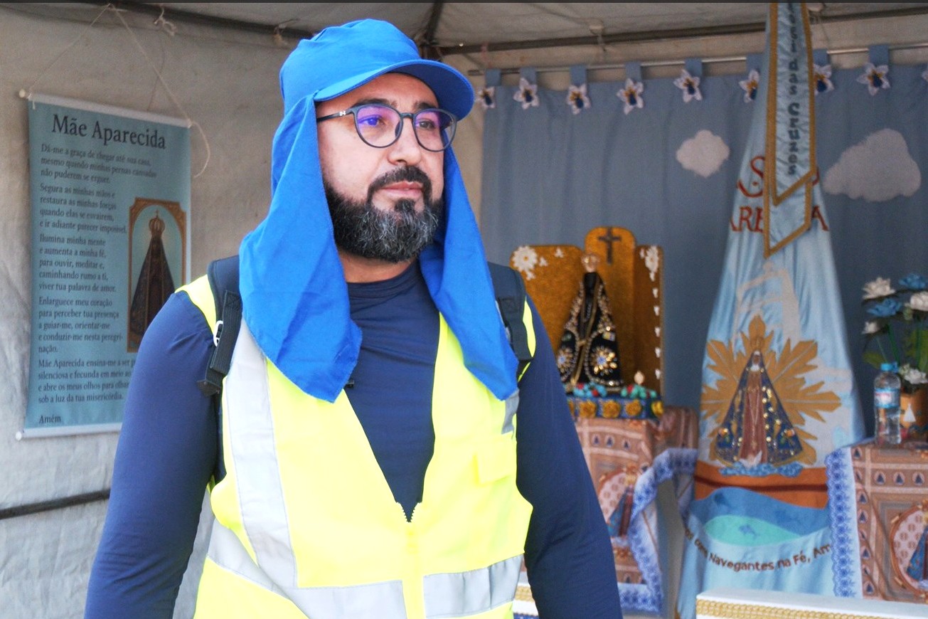 Entre os milhares de devotos está Geraldo da Silva, bancário de Campina Grande (PB). Ele começou a caminhada em Guarulhos e planeja chegar à Basílica após quatro dias de peregrinação.