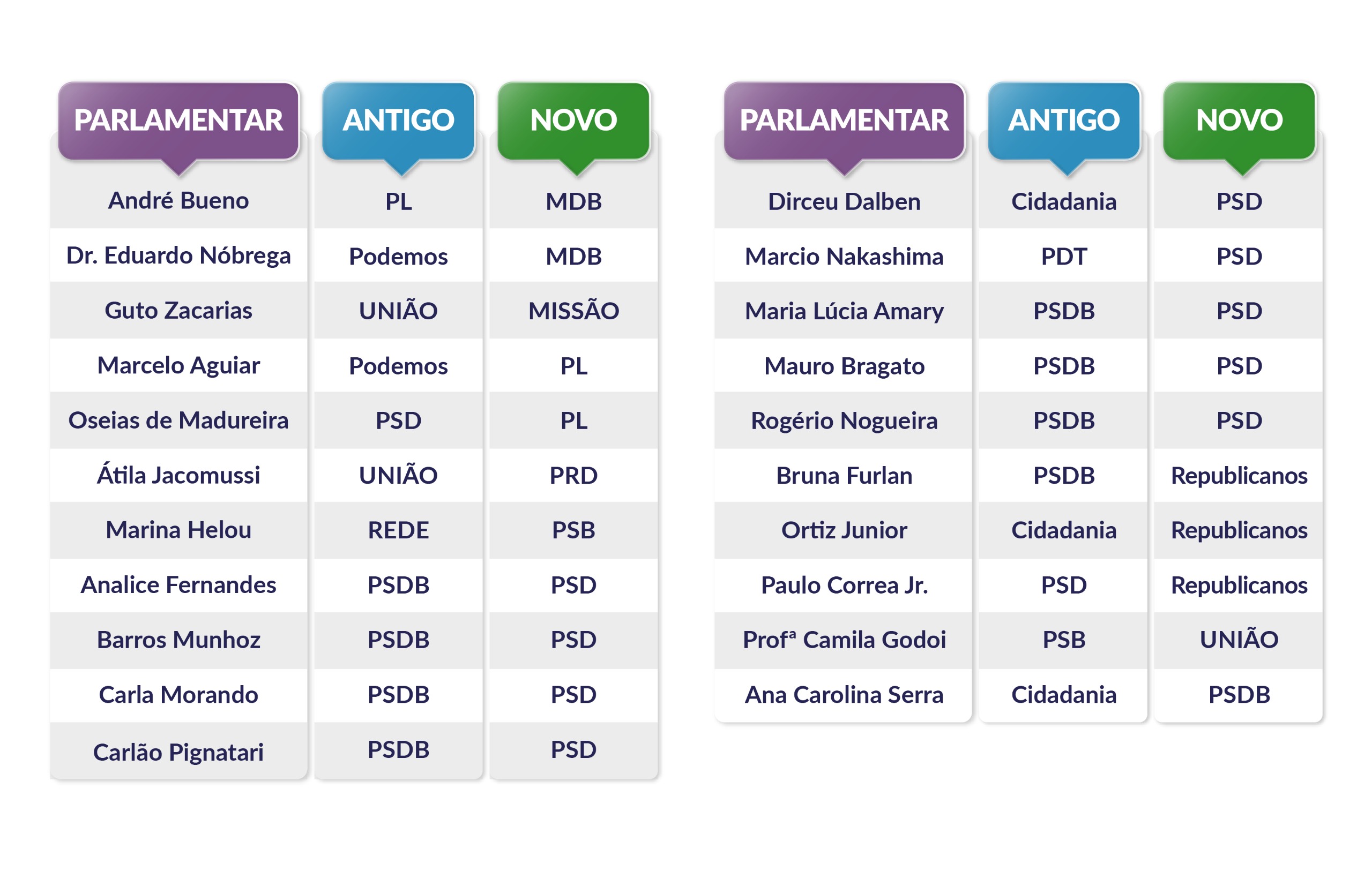 - Janela partidária: 21 parlamentares da Alesp trocam de partido