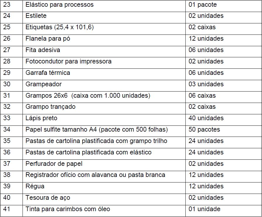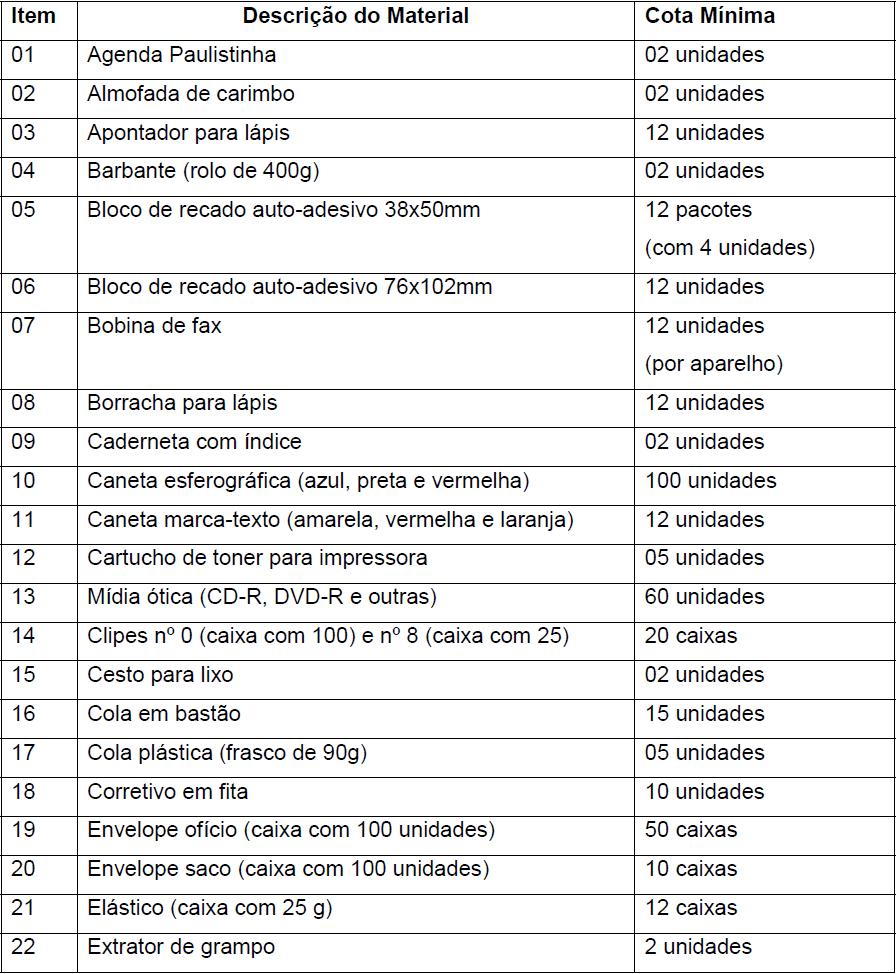decorrer do ano, salvo no caso de material cuja quantidade estipulada