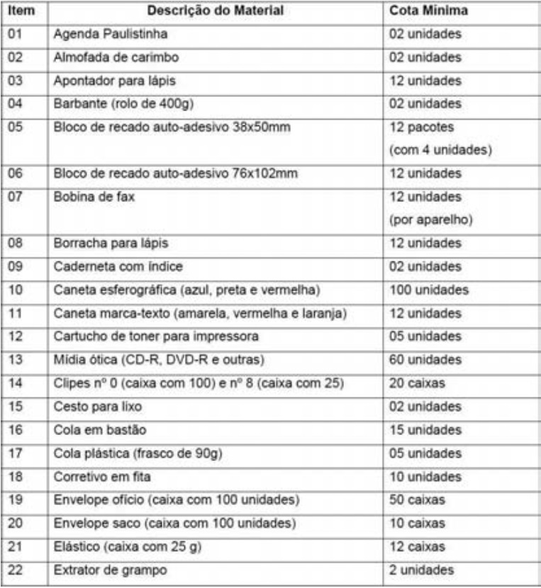 Artigo 5º - Fica delegada competência ao Secretário Geral de Administração para proceder com a atualização dos itens constante do anexo único, procedendo à inclusão ou exclusão de materiais de escritório considerados necessários ou não e fixando a respectiva cota mínima.