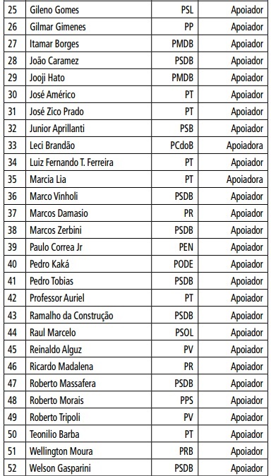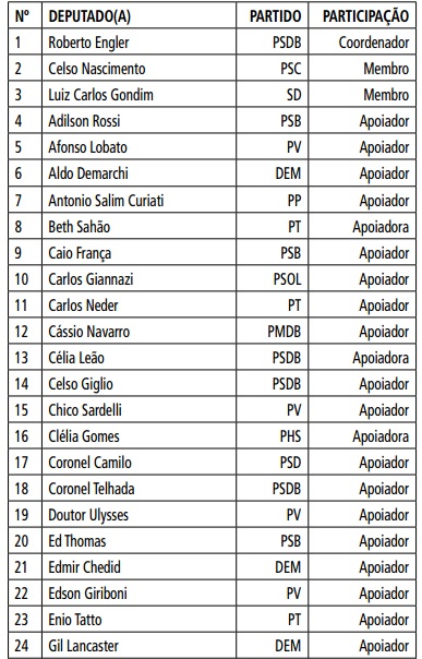 2) Ofício GRE_002/2017, de 9 de maio de 2017, do Deputado Roberto Engler - inclusão dos Deputados Adilson Rossi e Caio França, como Apoiadores, e do Deputado Celso Nascimento, como Membro;