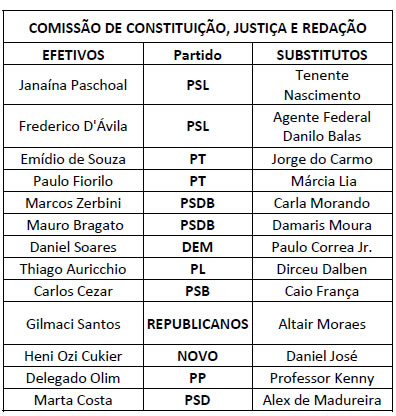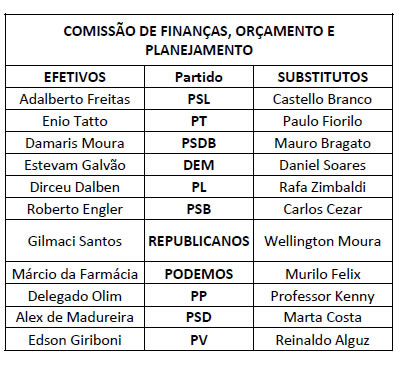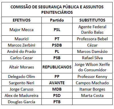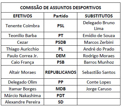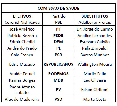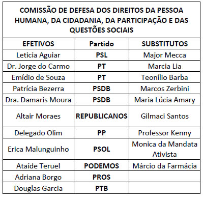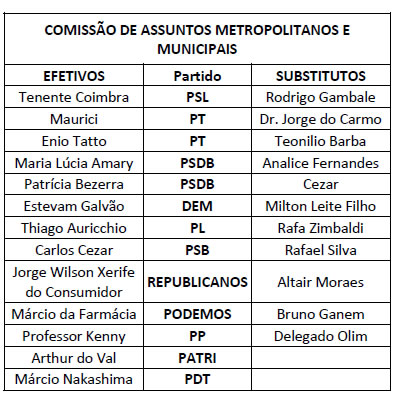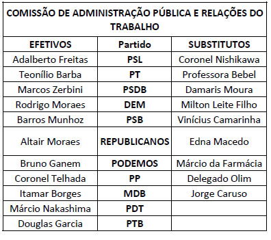 O Presidente da Assembleia Legislativa do Estado de São Paulo, no uso das atribuições que lhe são conferidas pelas normas regimentais, nomeia os membros das Comissões Permanentes para o Segundo Biênio da 19ª Legislatura, de conformidade com a relação abaixo: