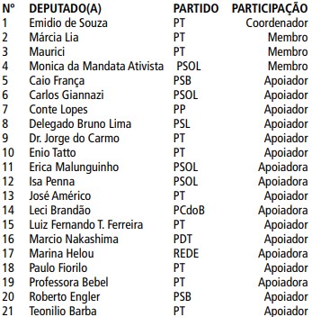 O Presidente da Assembleia Legislativa do Estado de São Paulo, no uso de suas atribuições regimentais e observado o Ofício s/nº, entregue à Mesa em 15 de dezembro de 2021, do Deputado Emidio de Souza, bem como os Termos de Adesão, nomeia as Deputadas e os Deputados relacionados abaixo para compor a Frente Parlamentar Contra Privatização da SABESP.
