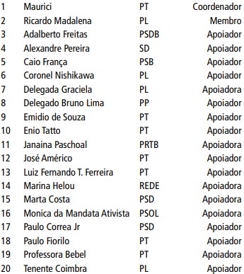 O Presidente da Assembleia Legislativa do Estado de São Paulo, no uso de suas atribuições regimentais e observado o Ofício s/n°, entregue à Mesa em 14 de junho de 2022, do Deputado Maurici, bem como os Termos de Adesão, nomeia as Deputadas e os Deputados relacionados abaixo para compor a Frente Parlamentar em Defesa do Meio Ambiente da Baixada Santista.