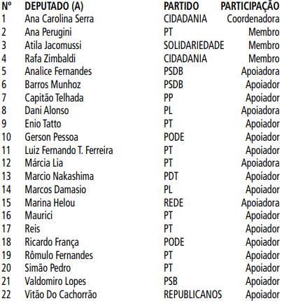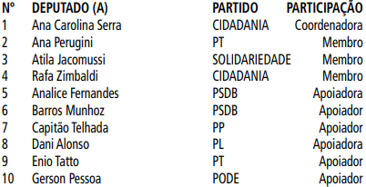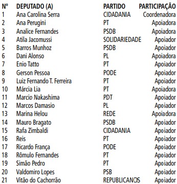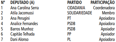 4) Ofício s/n°, entregue à Mesa em 30 de maio de 2023, da Deputada Ana Carolina Serra - alteração da participação da Deputada Ana Perugini de apoiadora para membro;