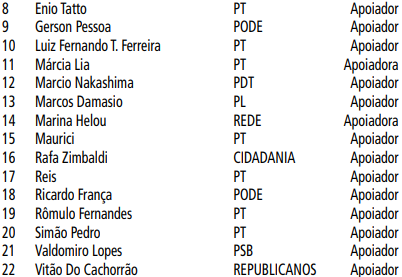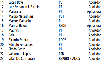 6) Ofício s/n°, entregue à Mesa em 02 de junho de 2023, do Deputado Lucas Bove, com ciência da Coordenadora Deputada Ana Carolina Serra - inclusão do Deputado Lucas Bove como apoiador.
