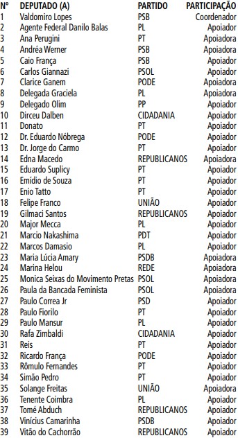O Presidente da Assembleia Legislativa do Estado de São Paulo, no uso de suas atribuições regimentais e observado a inicial do Processo Alesp Sem Papel Nº 10423, Frente Parlamentar Nº 97, entregue à Mesa em 20/04/2023, do Deputado Valdomiro Lopes, bem como os Termos de Adesão, nomeia as Deputadas e os Deputados relacionados abaixo para compor a Frente Parlamentar em Defesa da Construção do Primeiro Hospital do Coração Infantil do Estado.