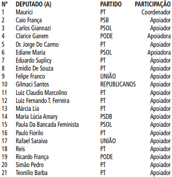 O Presidente da Assembleia Legislativa do Estado de São Paulo, no uso de suas atribuições regimentais e observado a inicial do Processo Alesp Sem Papel N° 11425, Frente Parlamentar N° 119, entregue à Mesa em 28/04/2023, do Deputado Maurici, bem como os Termos de Adesão, nomeia as Deputadas e os Deputados relacionados abaixo para compor a Frente Parlamentar em Prevenção e Mitigação dos Efeitos das Mudanças Climáticas nas Cidades e Núcleos Urbanos.