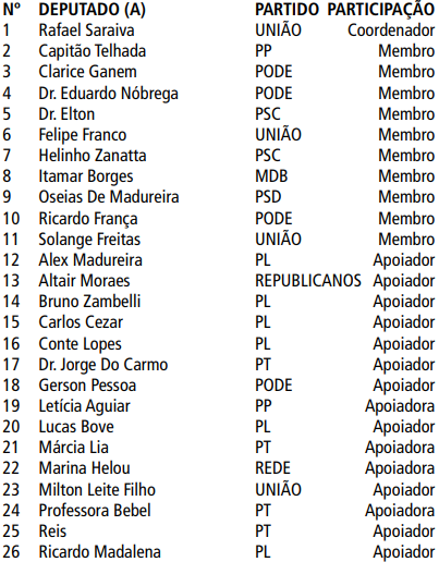 2) Ofício s/n°, entregue à Mesa em 15 de junho de 2023, do Deputado Itamar Borges com ciência do Coordenador, Deputado Rafael Saraiva - inclusão do Deputado Itamar Borges como membro;