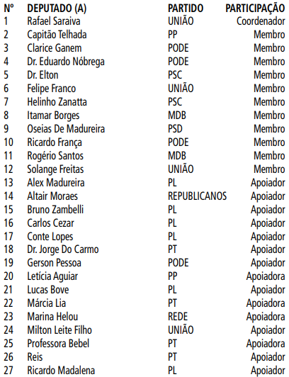 3) Ofício s/n°, entregue à Mesa em 20 de junho de 2023, do Deputado Rogério Santos com ciência do Coordenador, Deputado Rafael Saraiva - inclusão do Deputado Rogério Santos como membro.