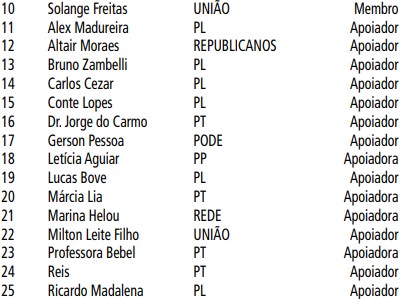 O Presidente da Assembleia Legislativa do Estado de São Paulo, no uso de suas atribuições regimentais e observado a inicial do Processo Alesp Sem Papel N° 8392, Frente Parlamentar N° 7, entregue à Mesa em 24/03/2023, do Deputado Rafael Saraiva, bem como os Termos de Adesão, nomeia as Deputadas e os Deputados relacionados abaixo para compor a Frente Parlamentar de Proteção às Pessoas com Transtorno do Espectro Autista.