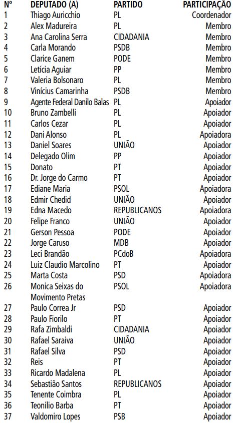 | 33 | Valeria Bolsonaro | PL | apoio |