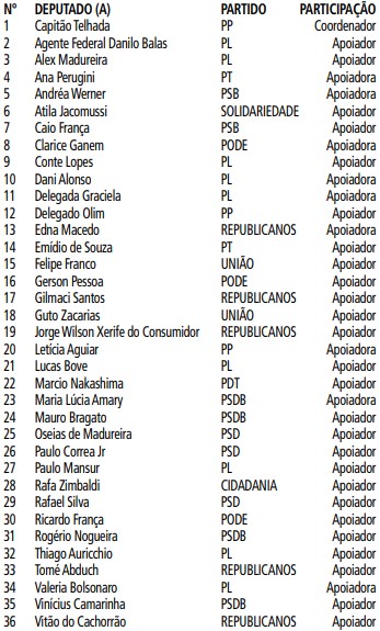 O Presidente da Assembleia Legislativa do Estado de São Paulo, no uso de suas atribuições regimentais e observado a inicial do Processo Alesp Sem Papel Nº 10414, Frente Parlamentar Nº 88, entregue à Mesa em 20/04/2023, do Deputado Capitão Telhada, bem como os Termos de Adesão, nomeia as Deputadas e os Deputados relacionados abaixo para compor a Frente Parlamentar pela Segurança nas Escolas Estaduais.