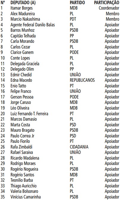 2) Ofício Especial FPIC, entregue à Mesa em 25 de abril de 2023 do Deputado Itamar Borges - Inclusão dos Deputados Capitão Telhada e Gerson Pessoa como apoiadores.