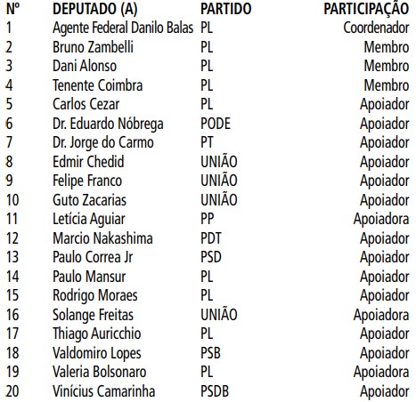 | 2 | Agente Federal Danilo Balas | PL | membro |