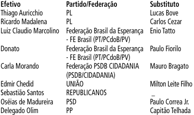 O Presidente da Assembleia Legislativa do Estado de São Paulo, no uso de suas atribuições regimentais e observado o disposto no Ato do Presidente n° 43, de 30 de abril de 2024, que criou a Comissão Parlamentar de Inquérito composta por 9 (nove) membros titulares e igual número de suplentes para, no prazo de 120 (cento e vinte) dias, "investigar os serviços prestados pelas empresas de telecomunicações, envolvendo telefonia fixa, móvel, internet e televisão por assinatura no Estado de São Paulo", conforme Requerimento n° 304, de 2023, de autoria Deputada Carla Morando e outros, CONSTITUI a referida Comissão, nomeando os seguintes membros efetivos e substitutos: