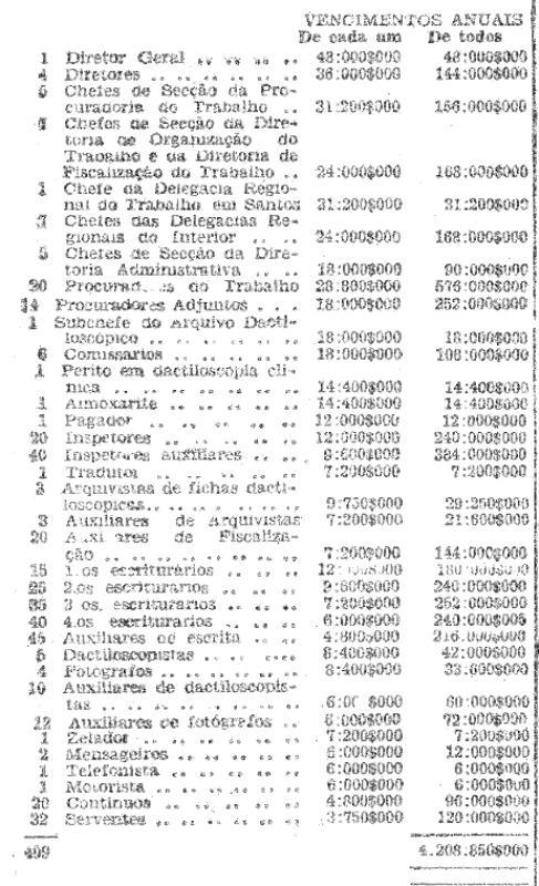 Artigo 3.o — O quadro de funcionáros do Departamento Estadual do Trabalho é o constante da tabela anexa, com os vencimentos nela discriminados.