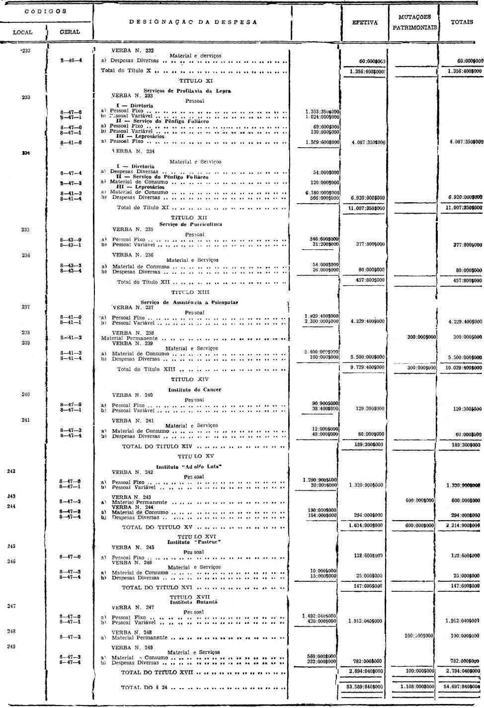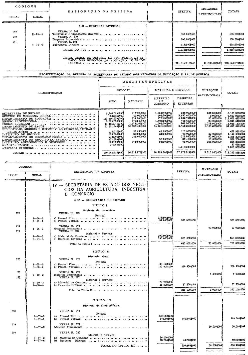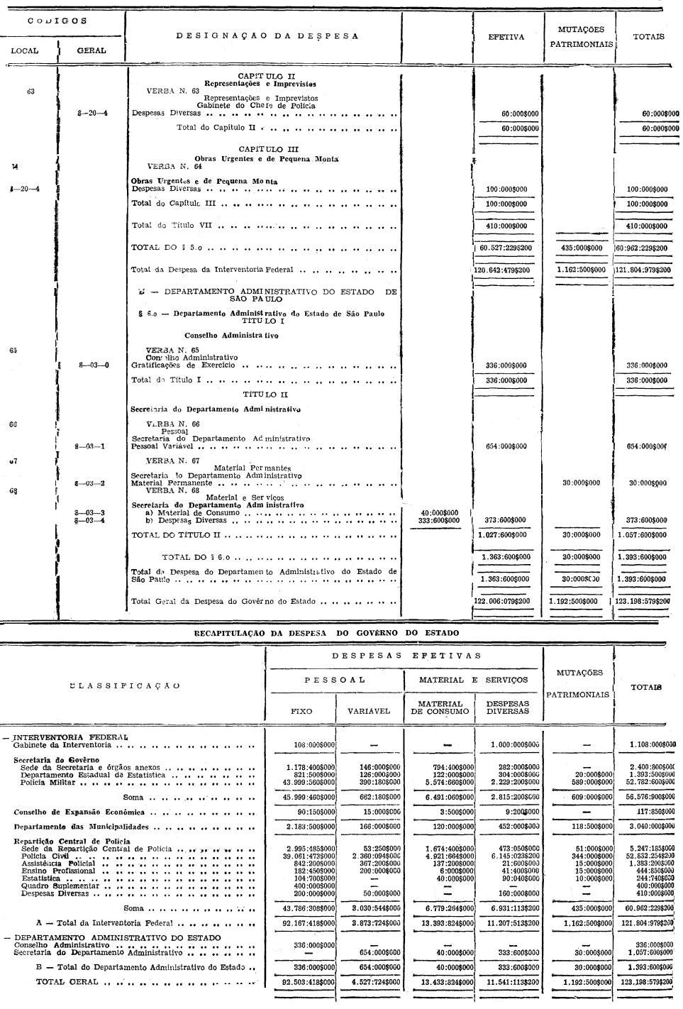 Despesa de Administração Geral do Estado, na coluna, "TOTAIS" onde se lê