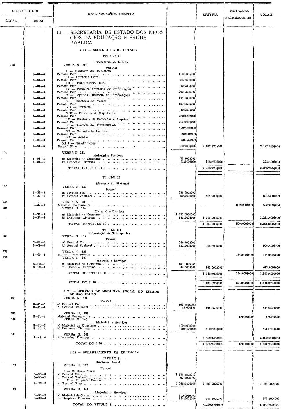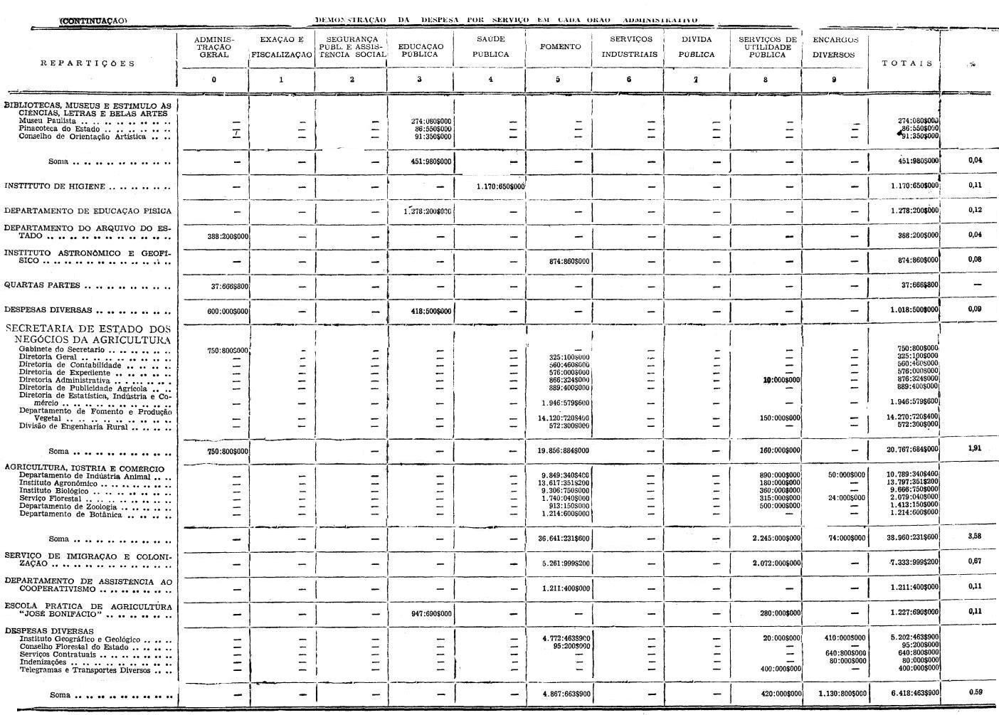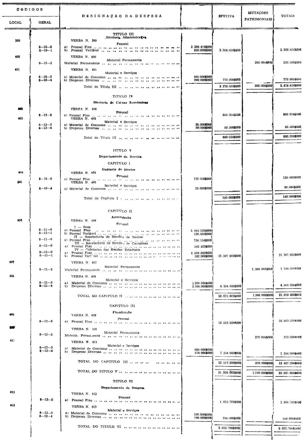 Despesa de Administração Geral do Estado, na coluna, "TOTAIS" onde se lê