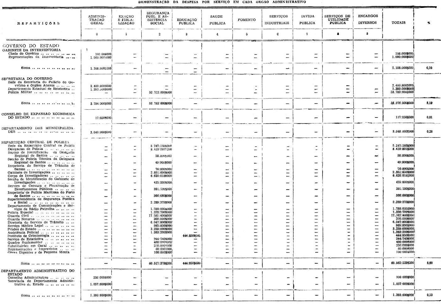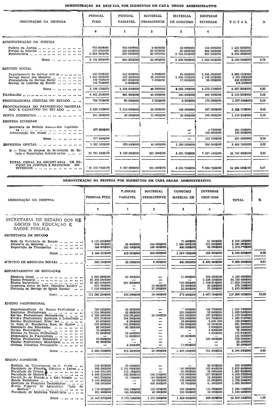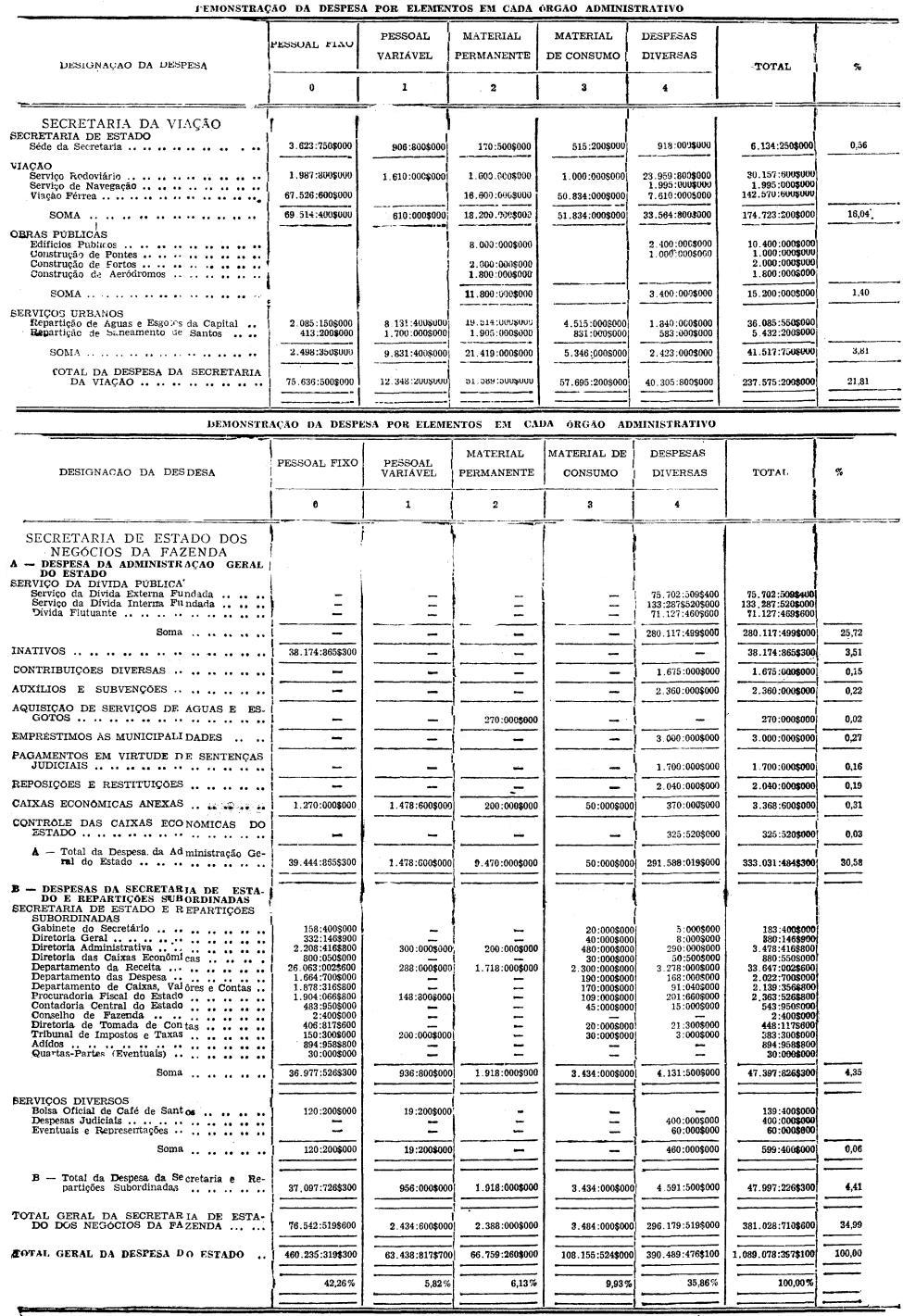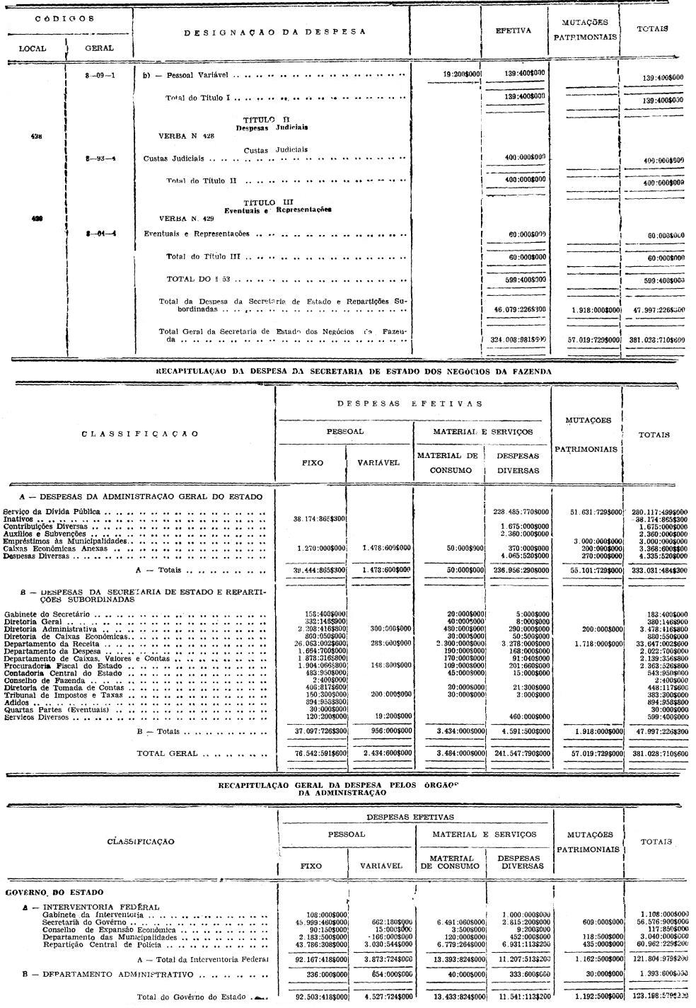 da Despesa da Administração Geral do Estado, da Secretaria da Fazenda, onde se