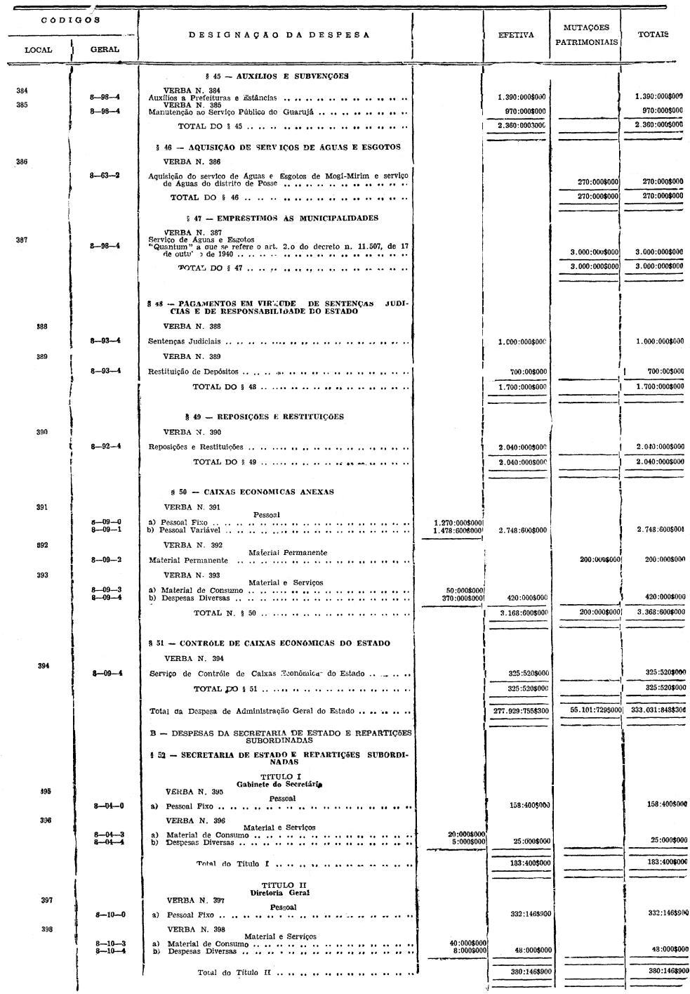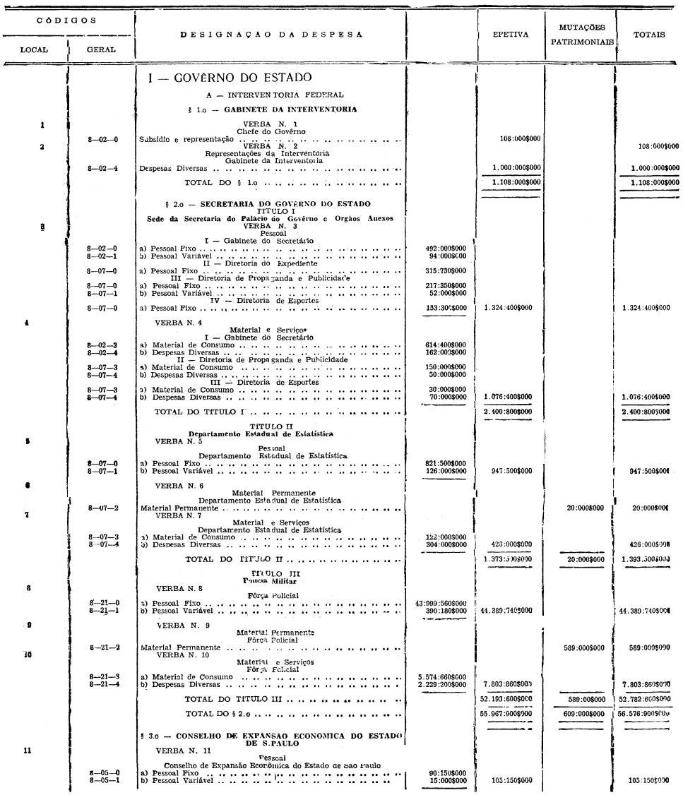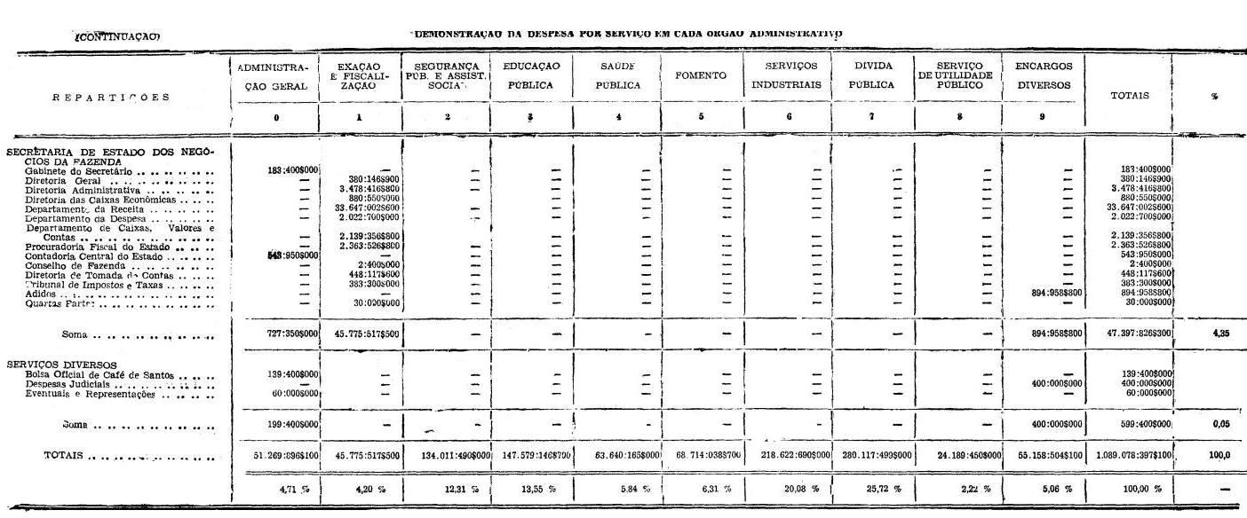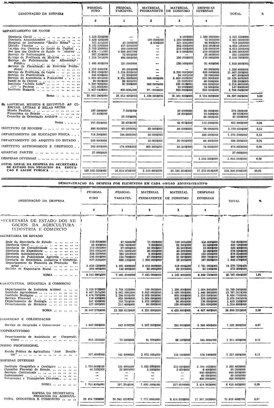 da Despesa da Administração Geral do Estado, da Secretaria da Fazenda, onde se