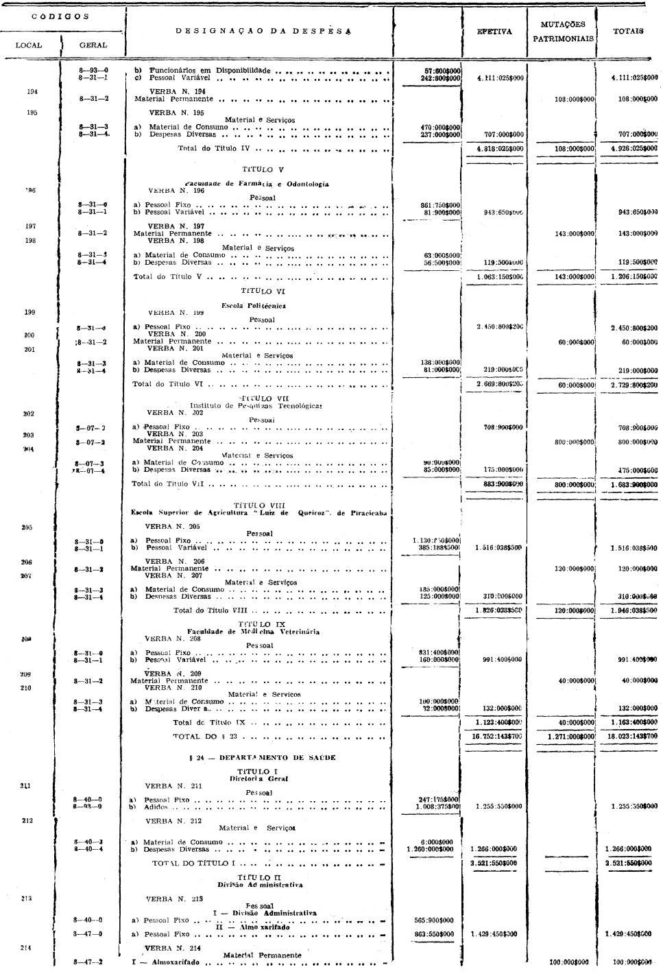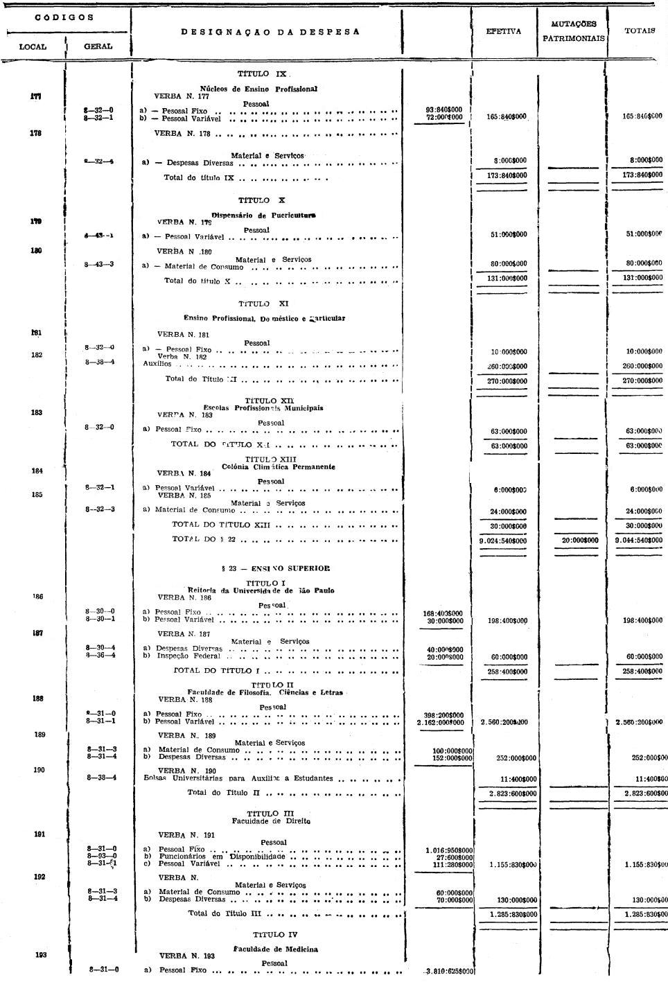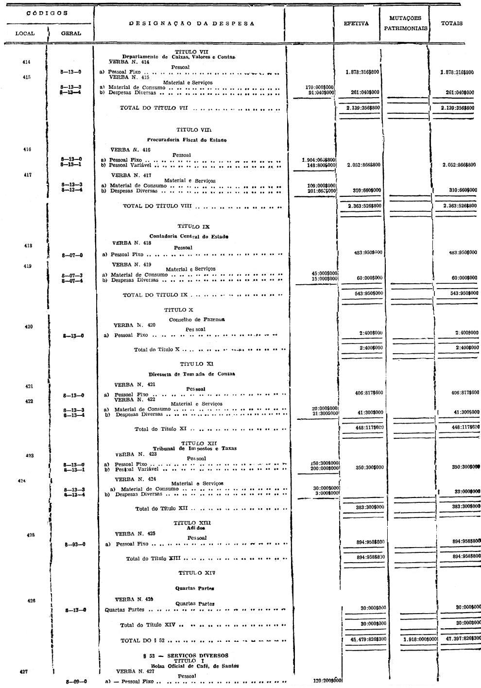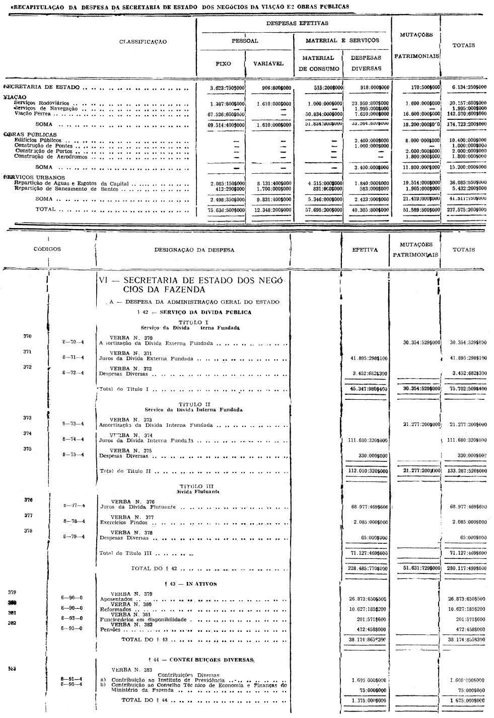da Despesa da Administração Geral do Estado, da Secretaria da Fazenda, onde se