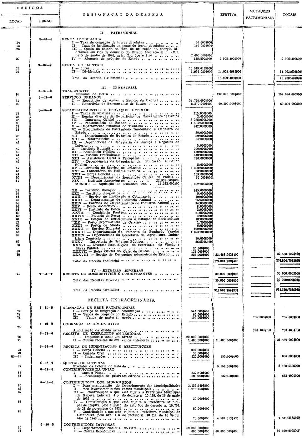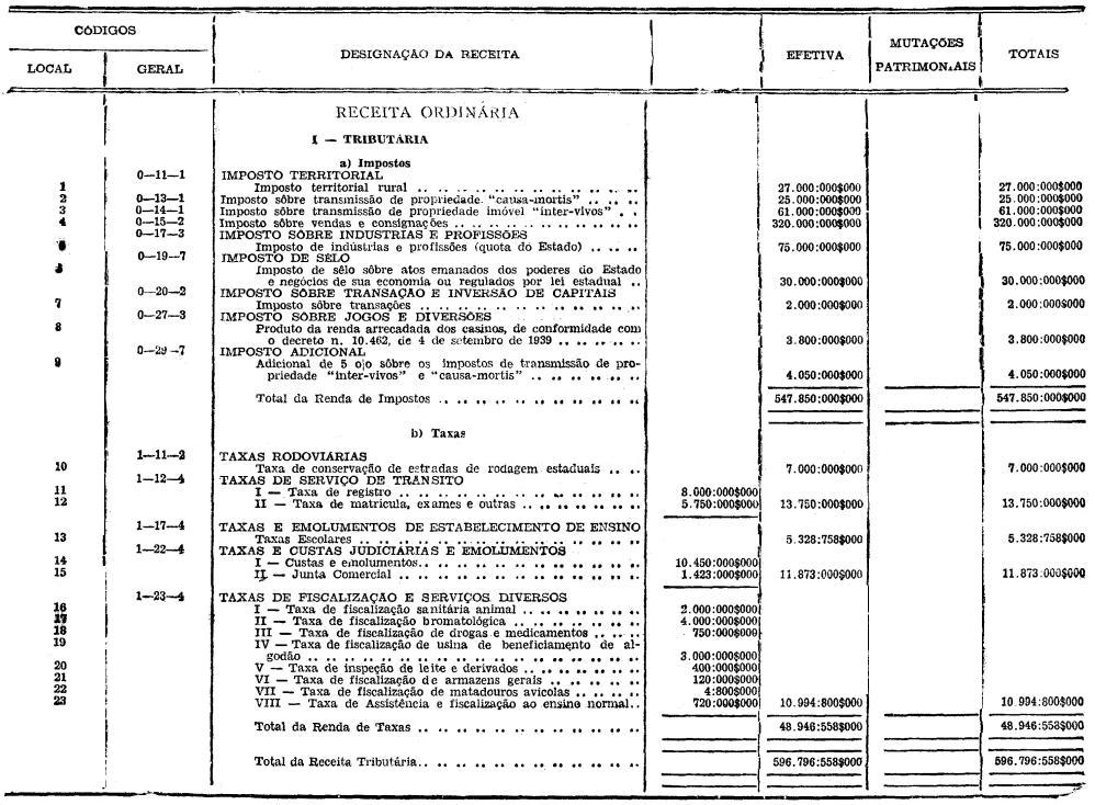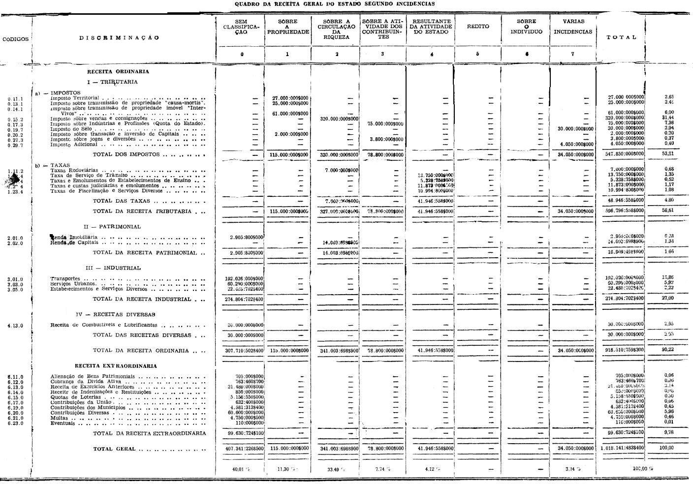 "Quadro da Receita Geral do Estado Segundo Incidência", leiam-se os códigos das