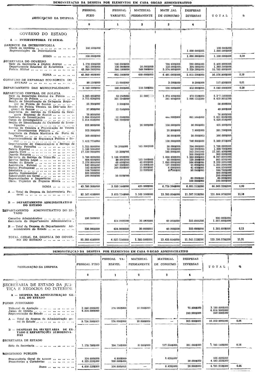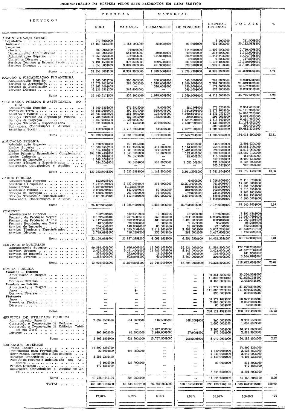 "Demonstração da Despesa por Elementos em cada Órgão Administrativo";;