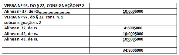 Artigo 2º - Com a redução de que trata o artigo anterior, fica reforçada a verba n. 96, § 22.°, consignação n. 1, subconsignação n. 1, alinea n. 1, do orçamento vigente, com a importância de rs. 34:800$000 (trinta e quatro contos e oitocentos mil réis).