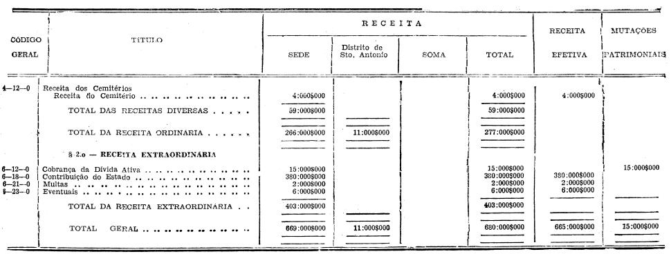 Artigo 1º - A Receita Geral da Prefeitura Sanitária de Campos do Jordão, para o exercício de 1941, é orçada em rs. 680:000$000, (seiscentos e oitenta contos de reis), a qual será arrecadada de conformidade com a legislação em vigor, obedecendo a seguinte classificação: