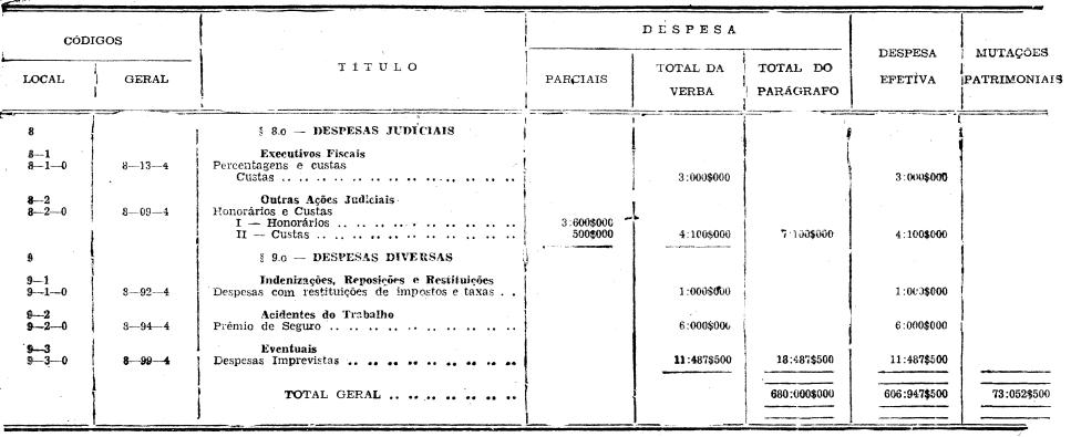 Artigo 2.° - A Despesa Geral da Prefeitura Sanitária de Campos do Jordão, para o exercício de 1941, e fixada em Rs 680:000$000 (seiscentos e oitenta contos de réis), a qual sera realizada obedecendo a seguinte classificação: