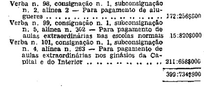 Artigo 1º - Fica aberto na Secretaria da Fazenda, á Secretaria da Educação e Saúde Pública, um credito suplementar de rs. 399:734$800 (trezentos e noventa e nove contos, setecentos e trinta e quatro mil e oitocentos réis), assim distribuido: