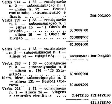 Artigo 2º - Para atender às despesas decorrentes do artigo 1º, sem necessidade de operação de crédito, fica deduzida igual importância do orçamento vigente, sendo da:
