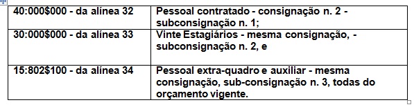 Artigo 2º - Para atender às despesas decorrentes do artigo 1º sem necessidade de operação de crédito, fica deduzida igual importância de rs. 85:802$100, da verba n. 223, § 33, sendo: